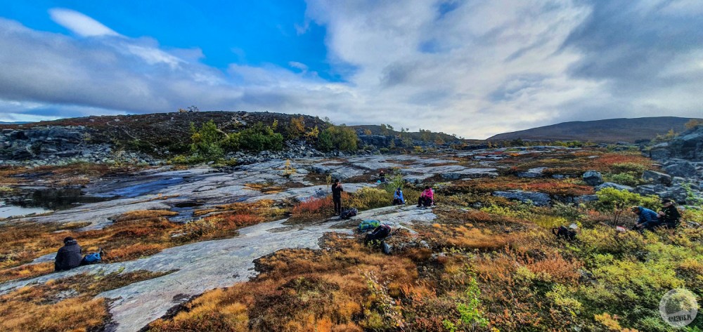 Trekkingi na lekko poza szlakami. W zależności od pogody wyjście na masyw góry Pältsan, lub po niższych wzgórzach przez dziką tundrę, wśród mokradeł i porostów. Dla chętnych możliwy odpoczynek krótki spacer do pobliskich potężnych wodospadów na rzece Baelcanjohka. Powrót po trekkingu do chatki. Wieczorem regeneracja w saunie i morsowanie w głębokim strumieniu!
