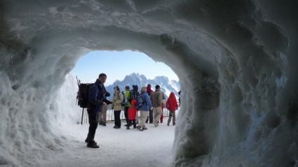 W tym dniu proponujemy wjazd spektakularną kolejką linową na Aiquille du Midi na wysokość 3842 m n.p.m. Po powrocie na stację pośrednią na Plan de l'Aiguille, przejdziemy szlakiem biegnącym wysoko nad Chamonix do Hotelu Montenvers. Stąd rozpościera się wspaniały widok na m.in.: Lodowiec Mer de Glace (Morze Lodu).