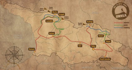 Lekki trekking w Dolinie Truso, szerokiej dolinie otoczonej stromymi zboczami Wielkiego Kaukazu. Trasa trekkingu poprowadzi wzdłuż brzegu rzeki Terek, przez opuszczone wioski Abano i Ketrisi, ciekawe źródła mineralne do ruin średniowiecznej Twierdzy Zakagori. Popołudniowy przejazd ze Stepancmindy na południe, do stolicy Gruzji, Tbilisi. Dla chętnych wieczorne spacery po starym mieście i impreza w jednym z licznych tbiliskich barów.