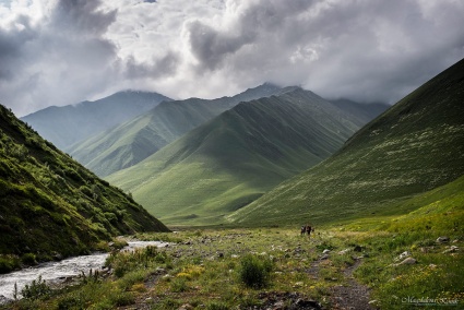 Te dwa regiony pokonamy pieszo. Miejscowe, sprawne konie poniosą nasze bagaże, a my będziemy wędrować od doliny do doliny, od wioski do wioski romantyczną krainą wysokich przełęczy i głębokich zielonych dolin tuż nad brzegami dzikich rzek. Przekroczymy Przełęcz Acunta (3510 m n.p.m.) i staniemy pod zboczami góry Kazbek (5033 m n.p.m.) - przepięknego wygasłego wulkanu, mitycznego miejsca cierpień Prometeusza.