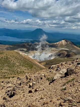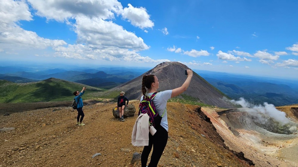 - Trekking na wulkan Meakan (雌阿寒岳), w sercu Parku Narodowego Akan-Mashu. To właśnie tam czeka nas jedna z najpiękniejszych wulkanicznych wędrówek w Japonii – na 1499m! Ten najkrótszy, ale dość stromy szlak zaczyna się w lesie świerków sachalińskich, które jako jedyne potrafią przetrwać w ubogiej wulkanicznej glebie. Szlak wiedzie przez krzewy sosn karłowatych i pośród alpejskiej roślinności, aż w końcu przechodzi w wulkaniczny krajobraz, pełen dymiących otworów parowych i ogromnych głazów. Ostatni odcinek jest bardziej wymagający, ale widoki na krater wynagrodzą każdy trud!Meakan to góra stosunkowo przystępna, ale pamiętaj – odpowiednie obuwie i wcześniejsze górskie doświadczenie są niezbędne! Nasz trekking zajmie około 5-6 godzin, a długość trasy wyniesie 7 km. Na początek szlaku dotrzemy taksówką.Będziemy się wspinać najkrótszym i najpopularniejszym szlakiem Meakan Onsen Trail o długości 3,4 km, przewyższenia 800 m, czas wejścia 3 godziny.