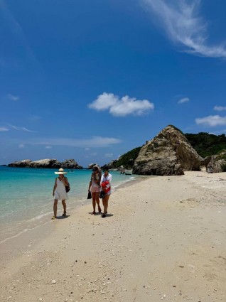 - Wyspa Aka (阿嘉島) Uroki tej spokojnej, mniej turystycznej wyspy w archipelagu Kerama odkryjesz w zupełnie wyjątkowy sposób – na rowerze. Maleńka wyspa Aka, połączona malowniczym mostem, z jeszcze mniejszą wyspą Geruma, zachwyca dzikimi plażami i punktami widokowymi, z których rozpościera się niesamowity widok na lazurowe morze. Rower to idealny środek transportu, by w pełni doświadczyć uroku wysp, na których nie ma transportu publicznego. To doskonała okazja, by połączyć aktywny wypoczynek z relaksem na białych plażach i kąpielami w krystalicznie czystym morzu. Dzisiejszy dzień będzie prawdziwą podróżą do tropikalnego raju – z dala od masowej turystyki. Większą część obu wysp porasta las, w którym żyją jelenie Kerama – uznane za Naturalny Skarb Japonii. Przy odrobinie szczęścia może uda nam się je spotkać. Na wyspie Aka wybierzemy się na przepiękną, kilometrową plażę Nishibama, często uznawaną za najbardziej idylliczną plażę w całym archipelagu Kerama. Na wyspie Geruma odwiedzimy natomiast historyczną rezydencję Takara, niegdyś zamieszkiwaną przez żeglarza, który dorobił się na handlu z Chinami.