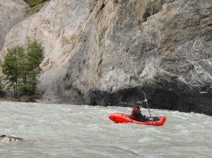 Spływ wśród monumentalnych pionowych białych ścian wąwozu, pod mostami kolejowymi Glacier Express, przerwy na malowniczych skalistych plażach. Kilkanaście bystrzy z falami o trudności II-II+ - na rozgrzewkę. Ćwiczenie manewrów przed trudniejszymi sekcjami.