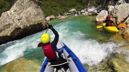 Dziś czeka nas wymagający dzień. Po pierwsze, wybierzemy się na najtrudniejszy odcinek rzeki Soca. Nurt znacznie przyspieszy, a rzeka kluczyć będzie między ogromnymi głazami, nie pozostawiając nam zbyt wiele czasu na manewry i omijanie. Jednocześnie jest to najpiękniejszy odcinek, którego przepłynięcie dostarczy wszystkim dużo radości i satysfakcji. Pływanie w swoistym skalnym ogrodzie to niesamowite przeżycie tak pod względem krajobrazowym, jak i sportowym.