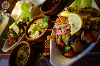 Zapewniamy śniadania w czasie całej podróży oraz kolacje oprócz Petry. Dodatkowe przekąski w ciągu dnia we własnym zakresie. Kuchnia nie stanowi szczególnego wyzwania dla naszych żołądków. Wypiekane chlebki, hummus, warzywa we wszelakiej postaci, mięso, lokalne desery, owoce - każdy znajdzie coś dla siebie. Posiłki na pustyni proste, ale syte.