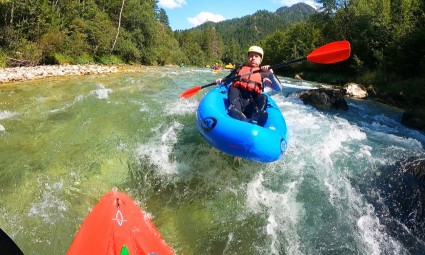 W drugi dzień szkolenia przeprowadzimy ćwiczenia z autoasekuracji, a więc samodzielnego powrotu do packrafta po wywrotce. Czeka nas tez spływ najbardziej malowniczym odcinkiem - kanionem Salzy