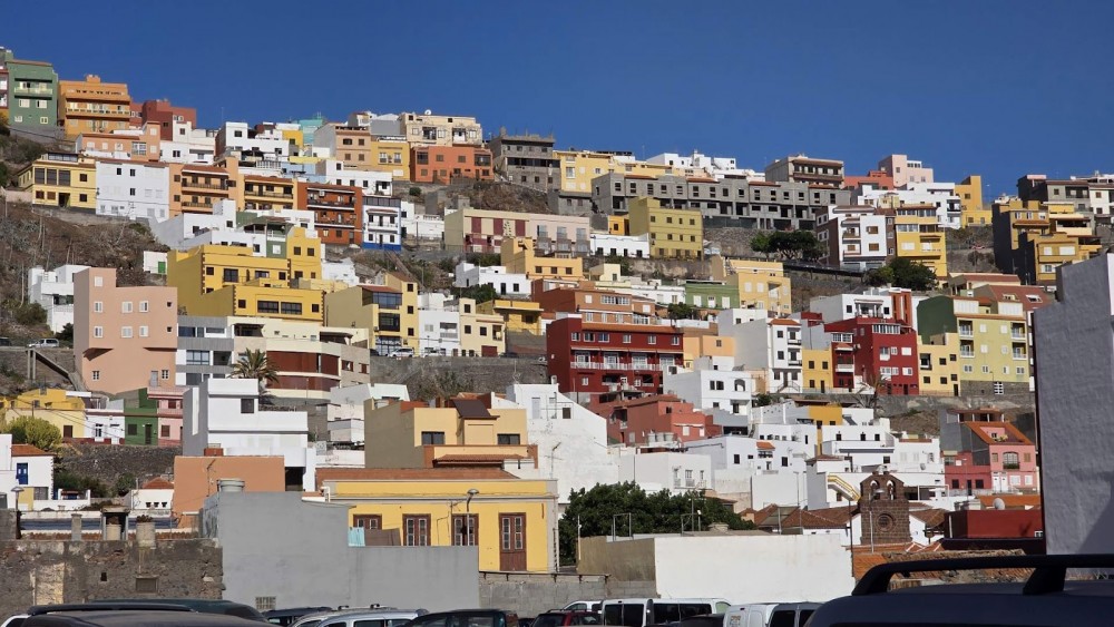 San Sebastián de La Gomera to spokojna, niewielka stolica wyspy, położona w szerokiej zatoce otoczonej górskimi grzbietami. Miasto ma wyraźnie historyczny charakter — to stąd Krzysztof Kolumb wyruszał w swoją pierwszą podróż do Ameryki, a pamiątką jest Torre del Conde, średniowieczna wieża obronna stojąca w zielonym parku. W centrum znajdują się wąskie uliczki, bielone domy z drewnianymi balkonami i plac Plaza de las Américas, gdzie toczy się lokalne życie. Port jest spokojny, z promami na Teneryfę i niewielką plażą miejską o czarnym, wulkanicznym piasku. San Sebastián łączy lekko kolonialny klimat, małomiasteczkowy spokój i świetne położenie.