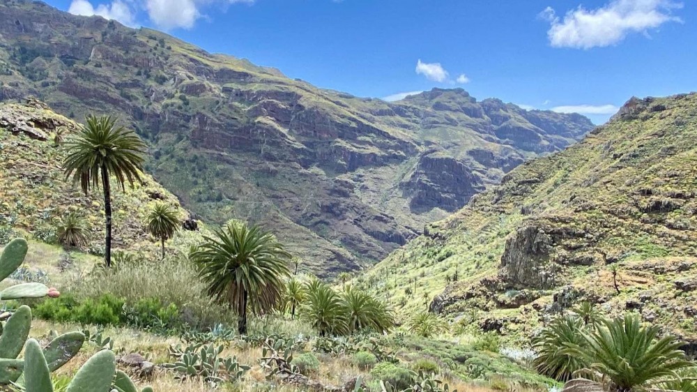 Pierwszy trekking pozwoli nam zobaczyć w całej okazałości jedno z najważniejszych miejsc La Gomery, dolinę Valle Gran Rey. Imponująca Valle Gran Rey, czyli Dolina Wielkiego Króla to jedno z najsłynniejszych i najpiękniejszych miejsc na wyspie. Największym skarbem doliny są zapierające dech w piersiach są widoki jakie rozpościerają się z punktów widokowych. To miejsce wygląda jak oaza schowana między gigantycznymi skałami: wysokie, pionowe ściany skalne opadają tu tarasami aż do oceanu, a między nimi rosną palmy, plantacje bananów i stoją małe białe domki. Dolina ma kilka poziomów – górne wioski jak Arure i Las Hayas są surowe i chłodniejsze, środkowe części (np. La Calera) pełne są palm i tradycyjnych zabudowań, a niżej znajduje się prawdziwy raj plażowy z szeroką promenadą i spokojnymi zatoczkami. To także ulubiona baza wędrowców: z Valle Gran Rey wychodzi mnóstwo szlaków w górę wąwozu. My udamy się jednym z nich, by dotrzeć do wioski El Cercado na krawędzi doliny, słynnej z ręcznie lepionej ceramiki. Potem wioska Chipude z ważnym kościołem Iglesia de la Virgen de Candelaria jest jednym z najważniejszych sanktuariów na całej La Gomerze. Czczona tu Virgen de Candelaria jest jedną z najstarszych i najbardziej szanowanych figur Maryi na wyspie. Powrotne zejście do wnętrza doliny starym kamiennym traktem zwanym Camino del Cerrillal z bazaltowymi płytami i schodami. Kończymy przy ujściu doliny do oceanu nad jedną z plaż.