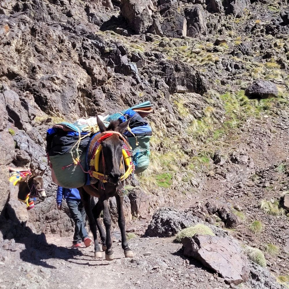Transport plecaków na mułach w czasie trwania trekkingu w górach