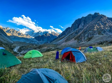 Kontynuujemy wędrówkę w górę Lewego Talgaru, po drodze mijając górujące nad okolicą szczyty. Wychodzimy z lasu, a krajobraz doliny zaskakująco zmienia się na przestrzeni kilku kilometrów. Dzień będzie obfitował w różnorodność terenu: przejdziemy między innymi przez morenę, a także ogromnym, wyschniętym korytem jednego z potoków. Dochodzimy do końca doliny, gdzie rozstawiamy obóz. Planowana trasa: 11 km; z 2316 na 3400 m n.p.m.