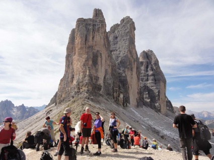 Wspólne dojście do schroniska Locatelli, i dalej trawers południowych ścian masywu Tre Cime, przez przełęcz Forcella Col di Mezzo do schroniska i parkingu Auronzo.