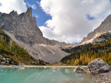 Przejście piesze trawersem Orti di Marcoira do jeziora Sorapis (1923m n.p.m.). Odpoczynek w schronisku Vandelli .