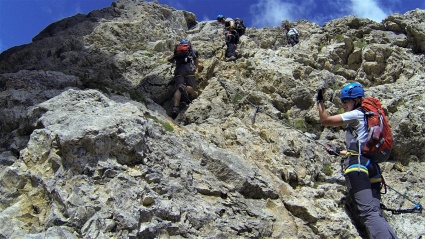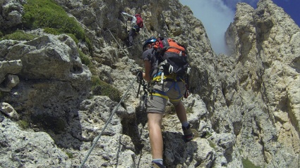 Ferrata Roda de Vael - Wycieczka zajmuje około 6-7h. Poruszamy się po ferracie, która wyprowadza nas na szczyt (o tej samej nazwie co żelazna perć) o wysokości 2800 m n.p.m. z malowniczymi widokami. Podczas pięknego zejścia ćwiczymy autoratownictwo na ferratach.
