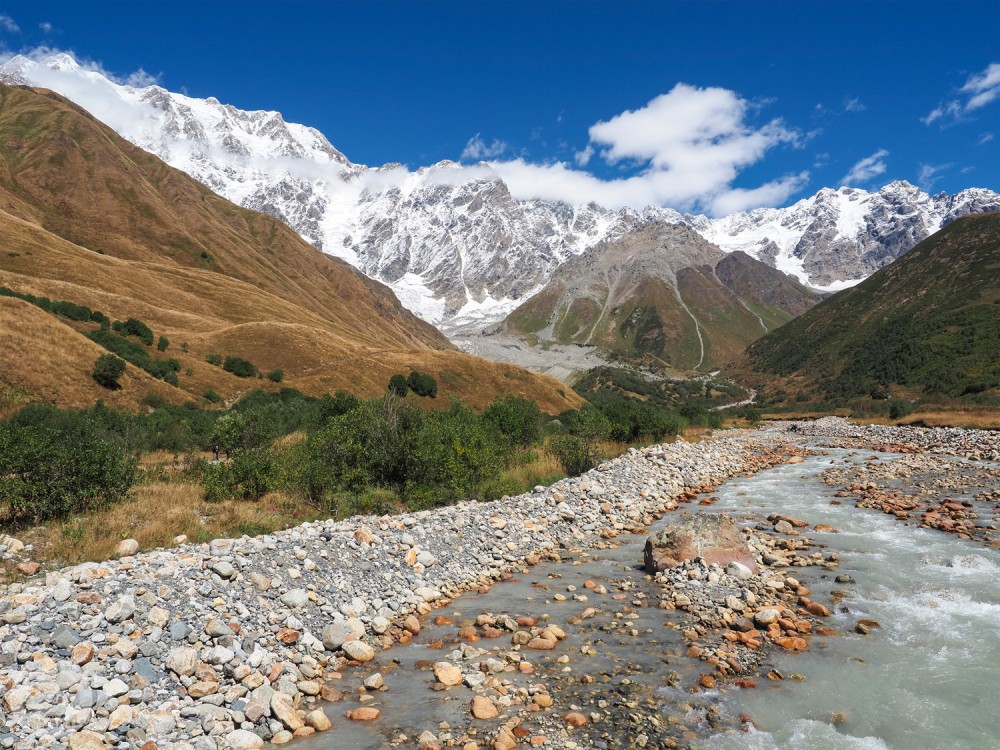 Dzień rozpoczniemy spokojnie, przejazdem z Mestii do wsi Czolaszi. Stamtąd ruszamy do trudno dostępnej osady Adiszi. Po drodze będziemy podziwiać widoki na przypominającą piramidę górę Tetnuldi (4858 m n.p.m.) oraz lodowiec Adiszi.