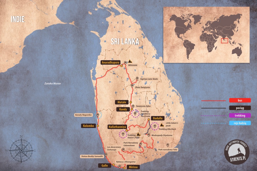 Zapraszamy na aktywną wycieczkę objazdową na Sri Lankę, podczas której zobaczymy niemal wszystko to, z czego słynie (dawny) Cejlon. Od Trójkąta Kulturalnego ze słynną Sigiriją i ważnymi świątyniami buddyjskimi, przez plantacje herbaty na południe od Kandy i miejscowość Ella i Most Dziewięciu Łuków, do złotych plaż południa. Pójdziemy na piękne spacery za dnia i nocny trekking na Adam’s Peak, pojedziemy na samochodowe safari do Parku Narodowego Udawalawe i boat safari w Negombo. Całości dopełni wyśmienita lankijska kuchnia, tuk-tuki i sesje ajurwedy, z której skorzystają wszyscy (nie raz).