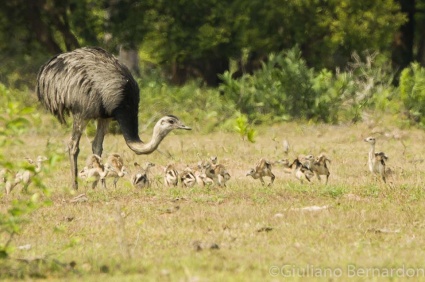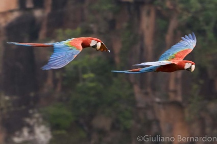 Podczas, gdy Pantanal jest nizinny i bagienny, park Chapada dos Guimarães położony jest na Wyżynie Brazylijskiej. Urokliwy krajobraz tworzy wysoki klif z piaskowca, porośnięty zaroślami typowymi dla sawanny, graniczący w dolnej partii z bujnym lasem galeriowym. Uwagę przyciąga wodospad o wysokości 60 metrów noszący nazwę Cachoeira Véu de Noiva – Ślubny Welon. W tej pięknej scenerii odnaleźć można następujące gatunki: nandu szare, kariama czerwononoga, rogatek, obrożnik rdzawokarkowy, chronka brazylijska, niedawno opisany siwogłowik jasnorzytny i bardziej rzadkie gatunki jak rdzawik żółtobrzuchy i lazurka. Czerwone klify z piaskowca są domem dla ary zielonoskrzydłej i marakany, lotniarza brazylijskiego i niektórych gatunków dużych ptaków drapieżnych min. wojownika ozdobnego, wojownika białogłowego i aguji wielkiej.