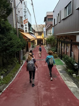 Onseny – gorące źródła. Gorące kąpiele są ważną częścią codzienności Japończyków i istotnym elementem tej podróży – zarówno onseny, jak i sentō. To coś więcej niż relaks. Oprócz właściwości rozgrzewających i terapeutycznych, wody termalne postrzegane są jako źródło oczyszczenia, a sam rytuał kąpieli ma niemal duchowy wymiar, związany z obecnością naturalnych minerałów. Pierwsze spotkanie z onsenem bywa nieco onieśmielające i inne niż wszystko, co znasz, ale bardzo szybko ustępuje miejsca czystej przyjemności. Prawdziwe zrozumienie gorących źródeł przychodzi z każdym kolejnym zanurzeniem. Napięcie znika, zmęczenie odpływa, a ciało i głowa odnajdują lekkość w unoszącej się parze.