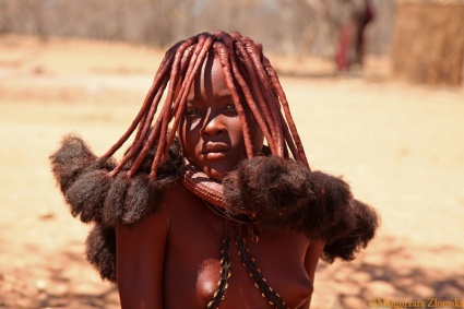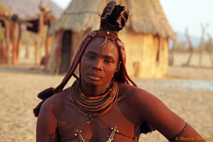 Piękne kobiety Himba są wizytówką Namibii. Swój dzień rozpoczynają od półgodzinnego okadzania ciała i smarowania się mieszanką ochry, tłuszczu i roślin. Dzięki temu ich skóra nabiera czerwonawego koloru. Półnagie kobiety Himba zobaczymy zarówno w tradycyjnych wioskach, jak i w supermarketach w stolicy kraju. Konkurować z nimi mogą jedynie kobiety z drugiego namibijskiego plemienia – Herero. Do dziś noszą wiktoriańskie suknie i chusty na głowach zaplecione tak, aby tworzyły krowie rogi. Dla Herero bowiem najpiękniejszym zwierzęciem jest właśnie krowa i ich strój ma nawiązywać do tego ideału urody.