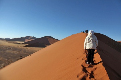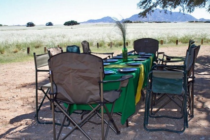 Wyruszamy w kierunku pustyni Namib. Po drodze zatrzymamy się na słynną szarlotkę w Solitair. Po południu wjedziemy jeepami w głąb Parku Narodowego Namib-Naukluft. Przespacerujemy się dnem kanionu Sesriem. Wejdziemy na szczyt słynnej wydmy – Dune 45 i będziemy podziwiać wspaniałe widoki w promieniach zachodzącego słońca. Wieczorem kolacja pod rozgwieżdżonym niebem.